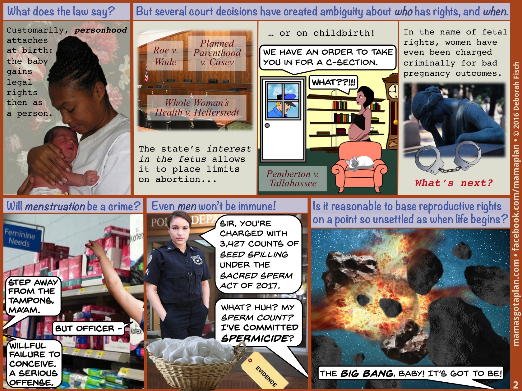 The court cases mentioned on Page 2 are quite well-known and easily found online, should you wish to read the opinions. No cases are mentioned for the criminalization of pregnancy (Frame 4), but a visit to National Advocates for Pregnant Women will tell you all you need to know.
